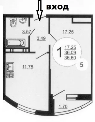 Продается однокомнатная квартира, 36.6 кв.м., 5/9 эт