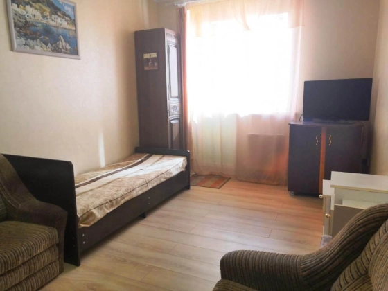 Продаю 1 к.кв. с хорошим ремонтом на 5-ем этаже в новом доме из монолит-кирпича, ремонт делали для себя. Ванна кафель, ламинат, дорогие обои. Кухня 12 кв.м. В доме качественный лифт OTIS. В комплексе есть все необходимое для качественной жизни: садик, школа, детские площадки, прогулочная зона, большое количество бесплатных парковочных мест на территории комплекса, Магнит, Магнит-косметик, аптеки, транспорт в 100 метрах, автобусы и маршрутки ходят каждые 5 минут, куда с легкостью можно добраться в центр города за 15 минут. С балкона открывается очень красивый вид. Соседние улицы: Красных Партизан и Западный обход, Академика Лукьяненко, Заполярная.